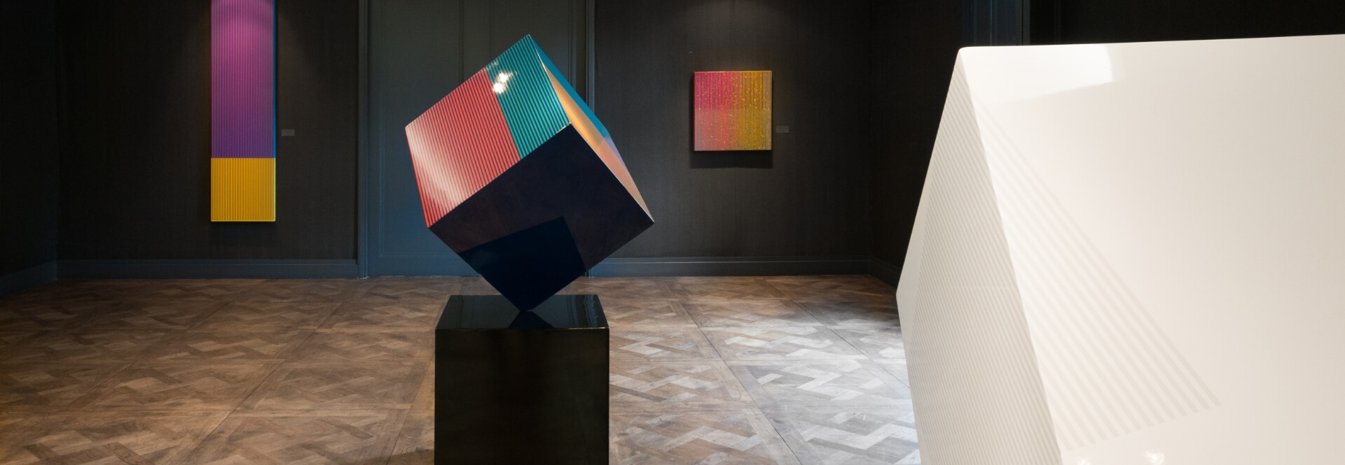Everard Read Circa Cape TownInspired by the tongue in cheek and humorous approach in their reaction; I started a series dedicated to the Influence of the “laws of chance” that Hans Arp (founder of Dada) incorporated in his work 100 years to date. Arp instilled the necessity to challenge expectations, work spontaneously and according to chance. Here I shoot, paint, peal, paint, crush geometric ready-mades and explores the boundaries of colour theory; all still making it mathematically reflect 100, in celebration of this century of liberation.